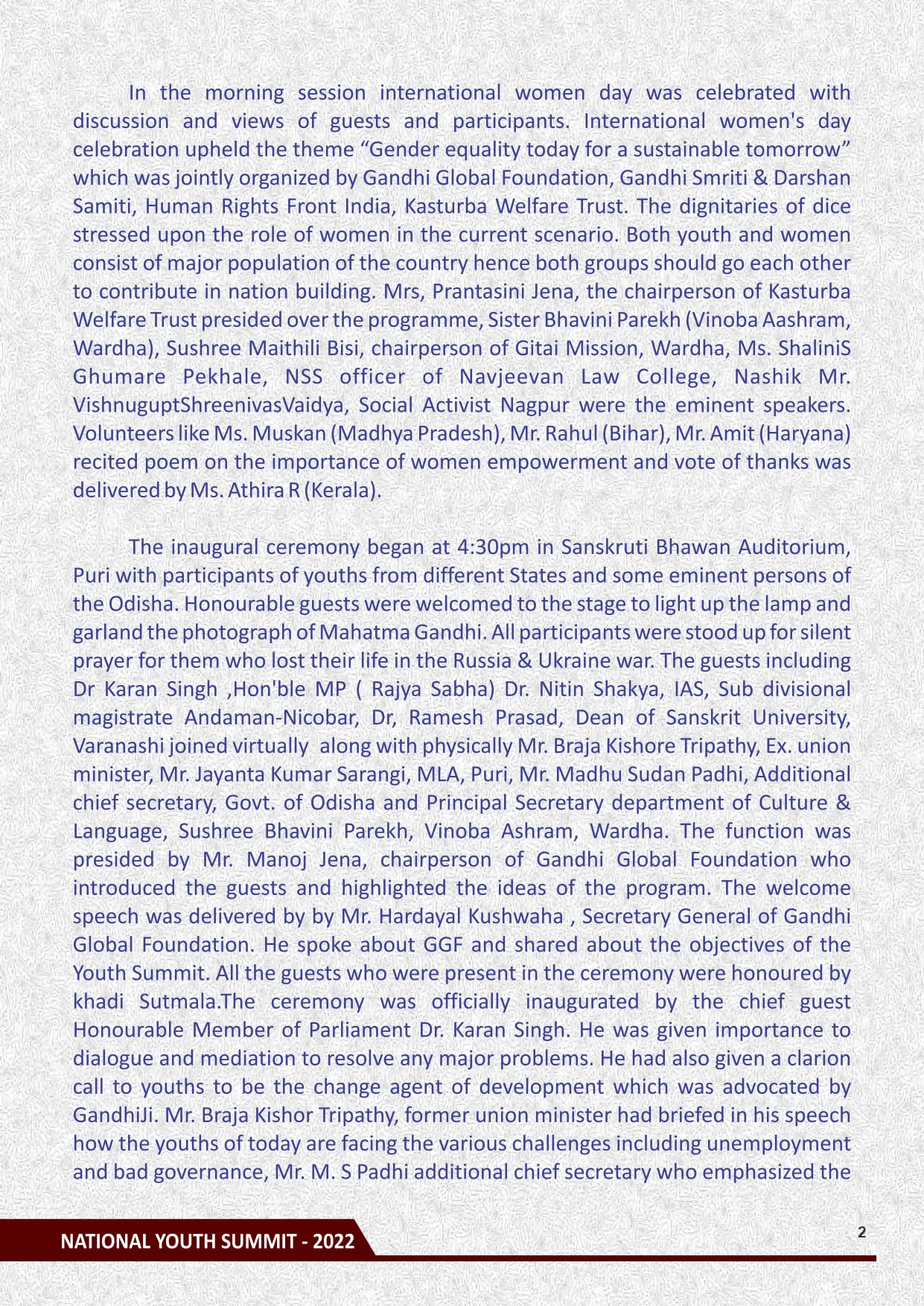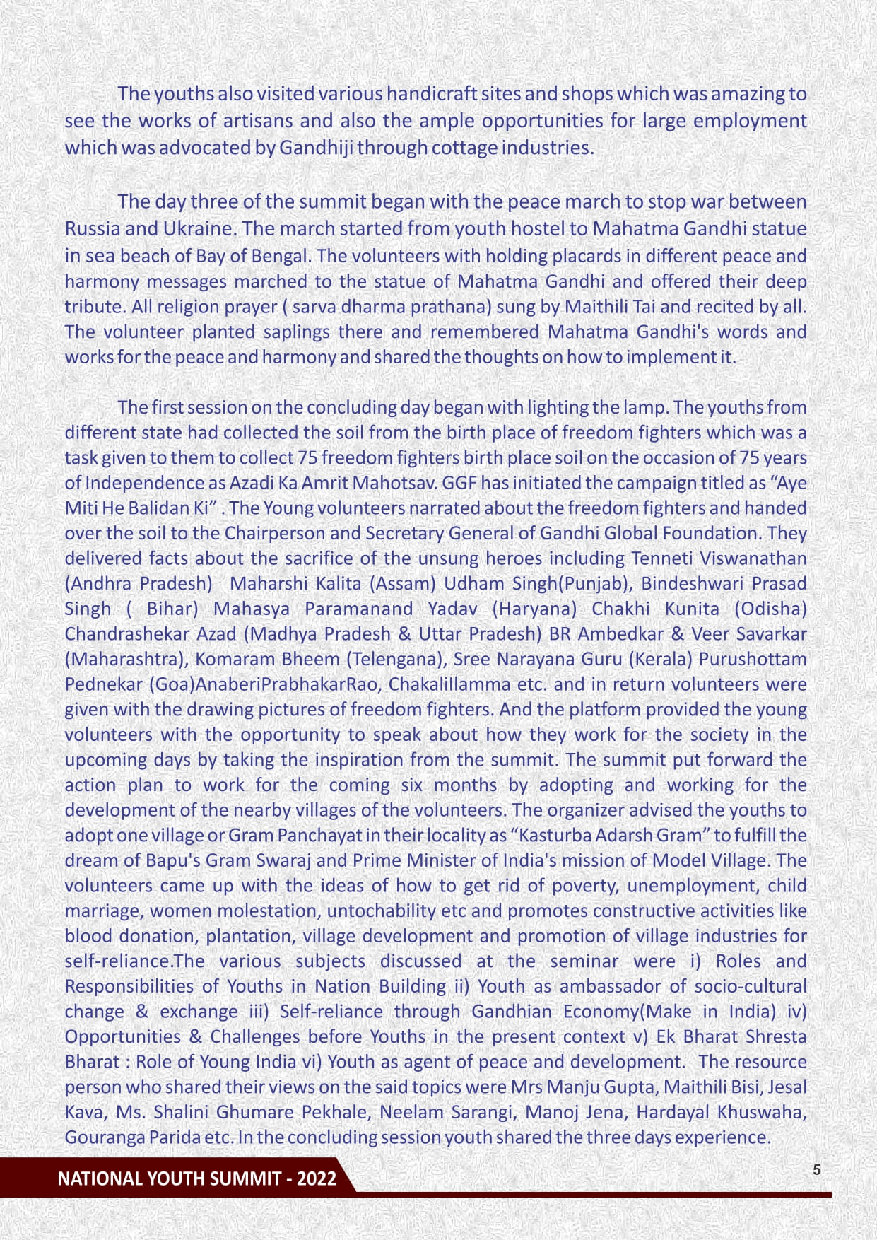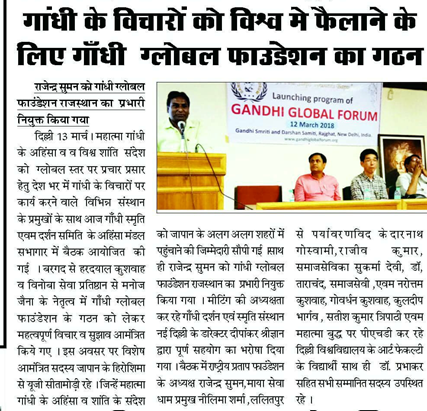 Gandhi Global Foundation (GGF) is an international forum working for the promotion of peace, non-violence, volunteerism, humanism and cultural exchange among the different countries. It also promotes a peaceful and egalitarian society based on the principles expounded by Mahatma Gandhi.