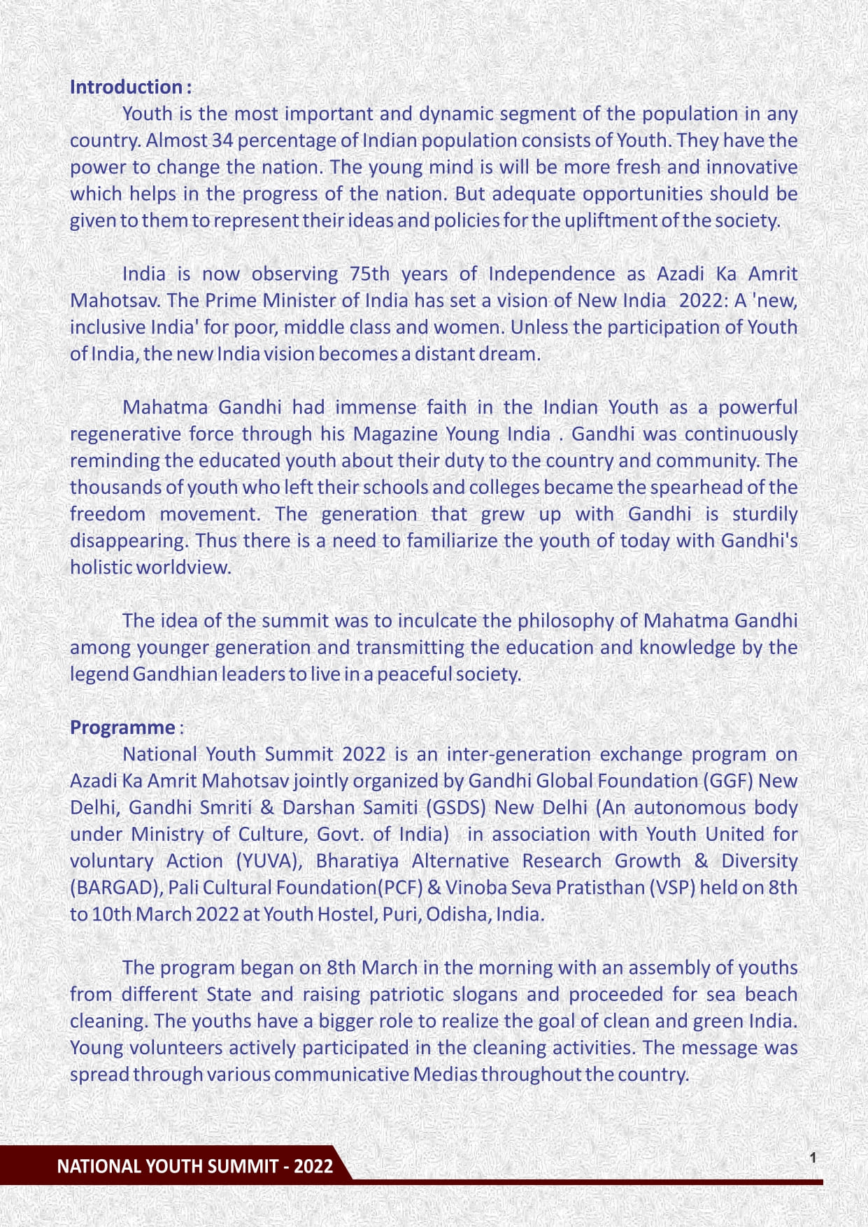 Read MoreThe objectives of this meeting are to revive, promote, spread and reinforce Gandhian values of truth, non-violence, self-reliance , swachhata, swadeshi and sustainable development. To awaken about the Gandhian values, the civil society organizations, peoples forum, students, youths media persons, elected representatives are to be involved to rectify their activities towards establishment of a peaceful society. These programs can generate mutual cohesiveness among the stakeholders and target groups to lead a secure and dignified life.